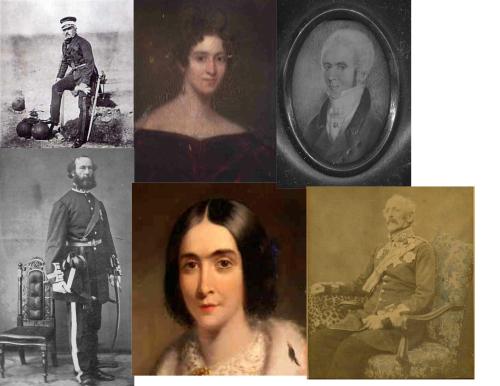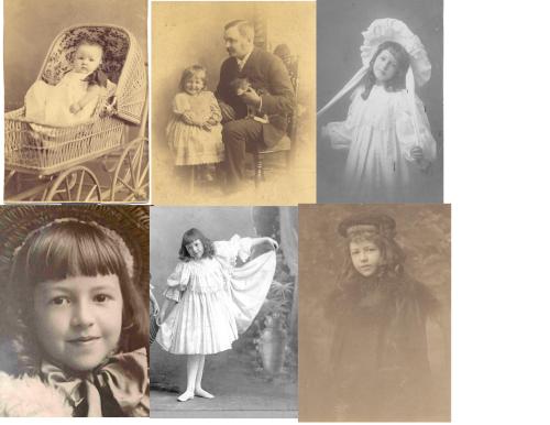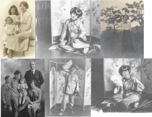 from bottom left: Helen and Ted with children Eve, Peter and Dee Dee, 1925; four images of Helen, including her costumes for local productions of Gilbert and Sullivan`s Mikado (McBride Collection)