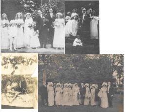 from bottom left: cutting the cake; the wedding party; Helen beside Ted`s uncle, Edgar Dewdney; Helen (fourth from right) as a bridesmaid for a friend`s wedding (McBride Collection)