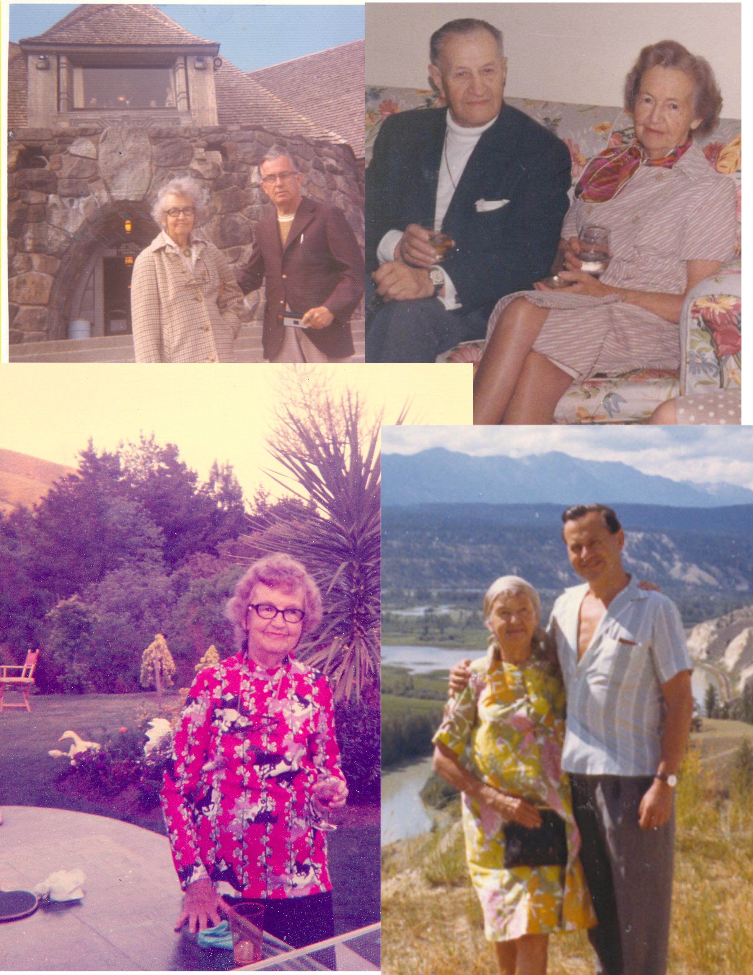 from top left: with Leigh McBride at Banff Springs Hotel; with Herbert Forbes-Roberts, father of Peter`s wife Maxine; with Peter; and in California (McBride Collection)