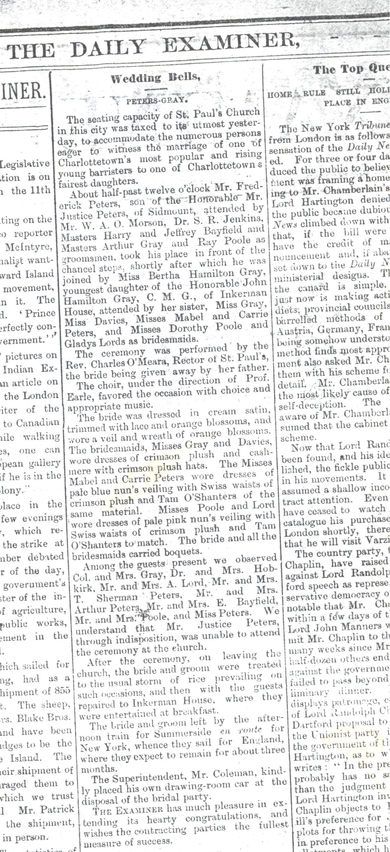 Mary Helen Peters was born in Charlottetown, Prince Edward Island on August 31, 1887. She was always known as Helen by friends and in the family, and in later years was known as Gran to her three children and ten grandchildren and many of her younger friends. The first of six children, she outlived all of them, including a younger sister who died in a fireplace accident, three brothers who died in the world wars, and another brother who had a mental disability.