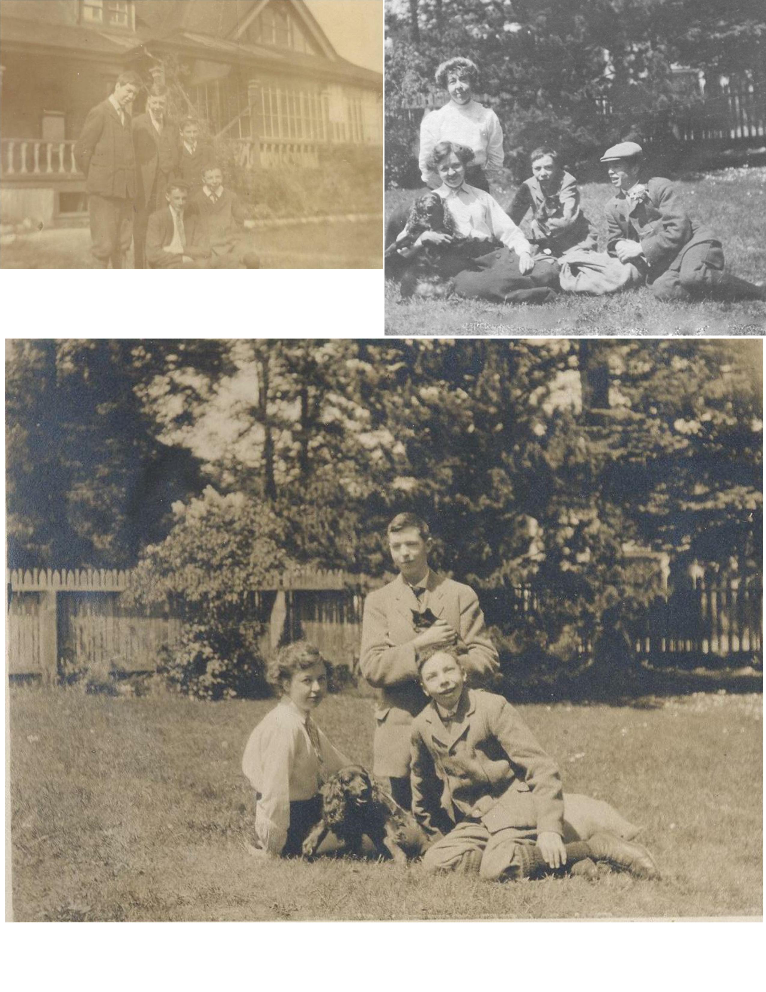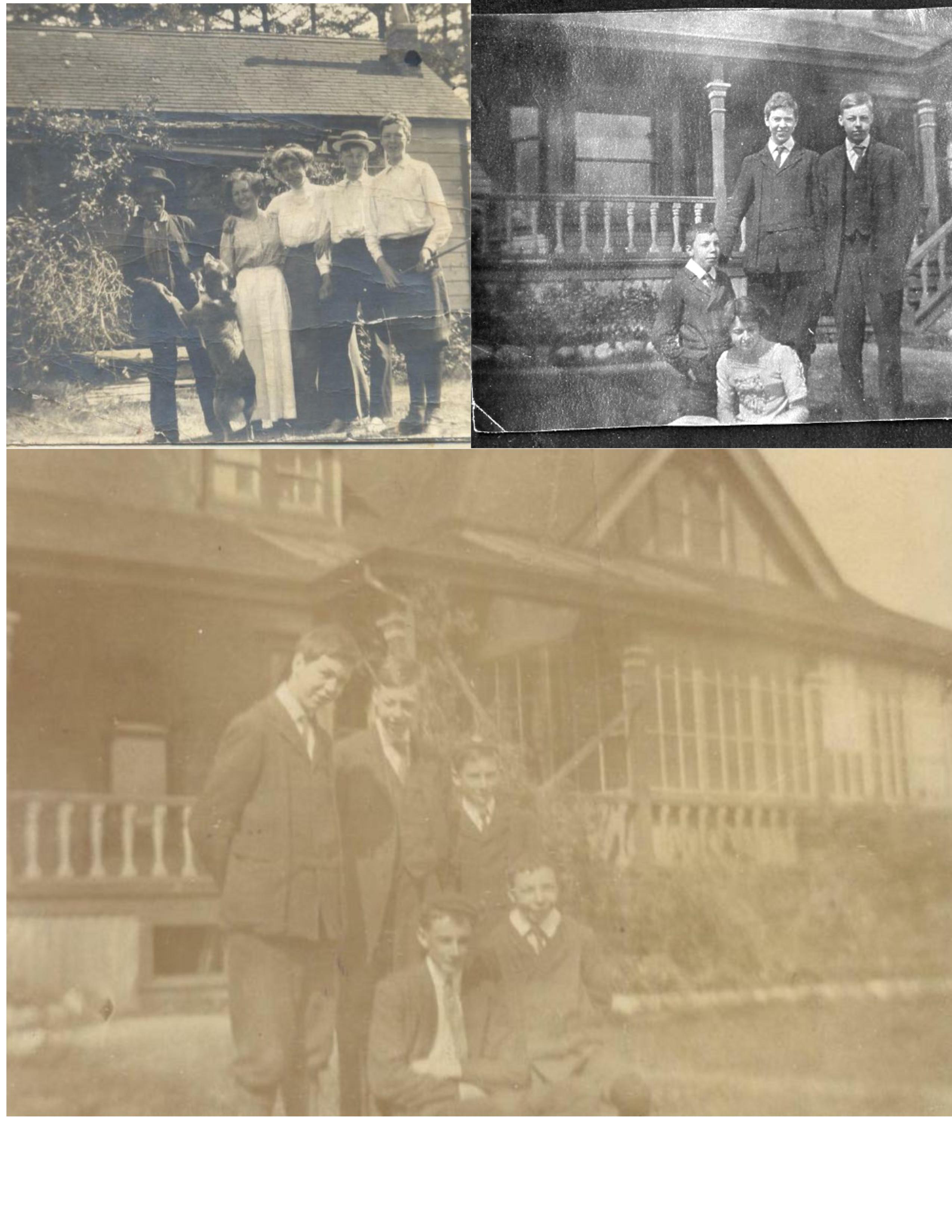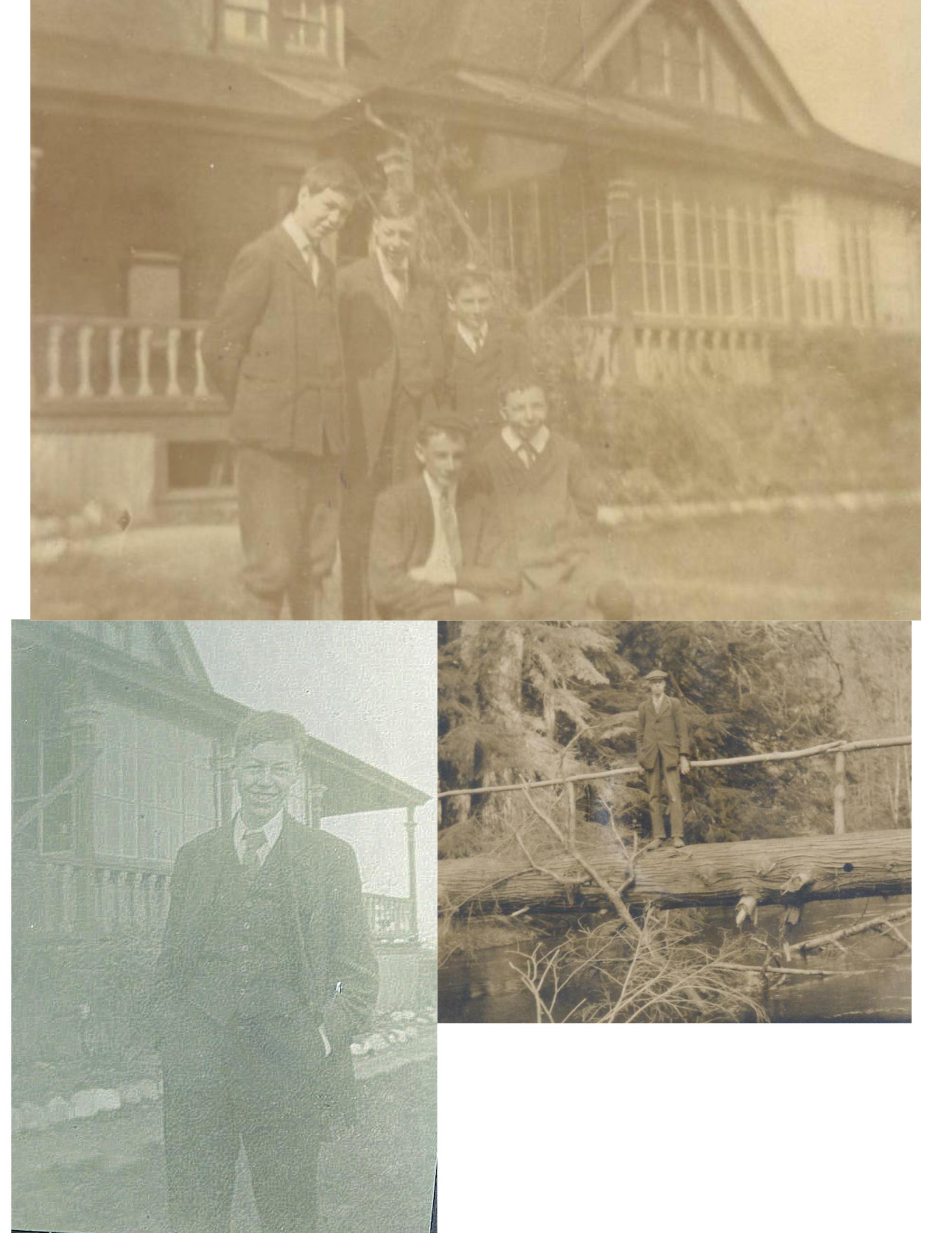from bottom left: Jack; Jack second from top left in a group that includes Gerald (to his left), Noel (bottom right) and two unidentified boys; and Jack on a log (McBride Collection)