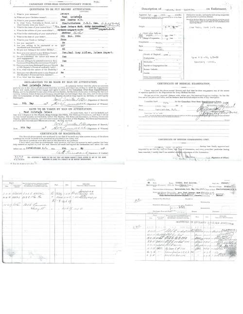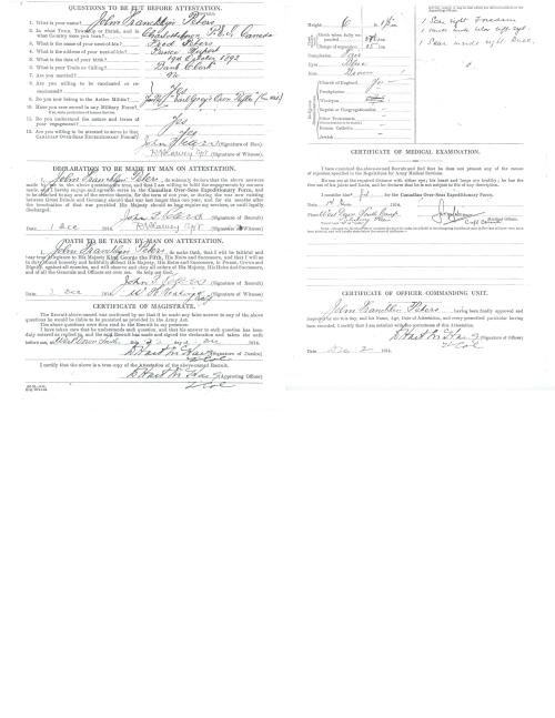 Jack`s attestation papers. Note the signatures of Captain Harvey and Colonel Hart-McHarg, both of whom were men of distinction who died in the Second Battle of Ypres along with Jack.