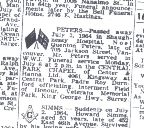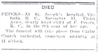 Two years later in 1894, fraternal twin brothers Gerald Hamilton Peters and Noel Quintan Peters were born. In 1899, after the family had moved across the continent to Victoria, British Columbia, sister Violet Avis Peters was born, seven years younger than Jack. His father had resigned as premier in October 1897, and moved his family to Victoria where he established a law practice with another well-known departing Maritimer, Sir Charles Hibbert Tupper.