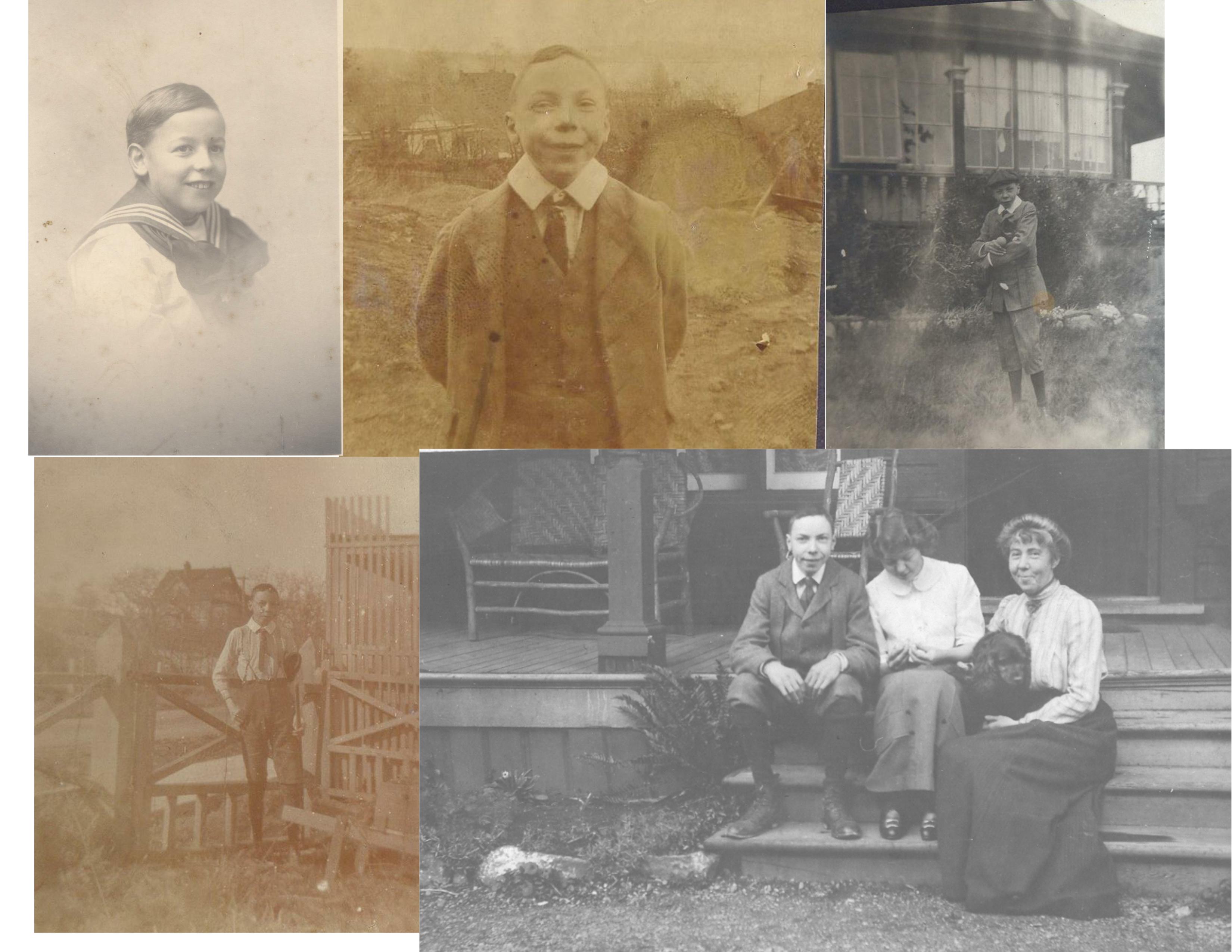 from bottom left: Jack at Bedford, England; Jack in Prince Rupert; as a teen; with his bicycle (McBride Collection)