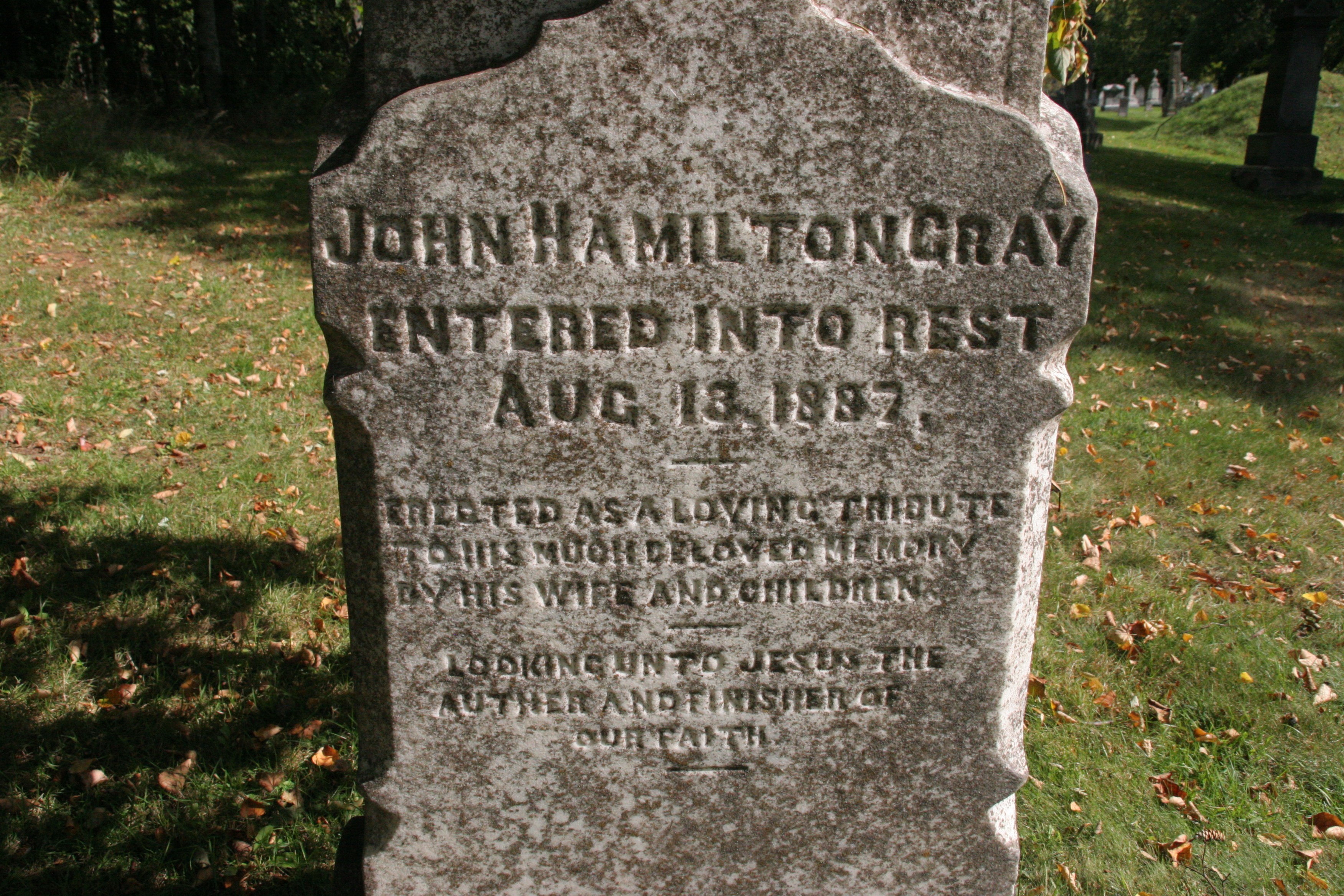 Ancestry-wise, no one has ever established a family connection between the two John Hamilton Grays. The New Brunswick Gray had roots in England, while the PEI Gray was the son of Robert Gray, a United Empire Loyalist from Virginia who was born near Glasgow, Scotland. The PEI Gray`s mother, Mary Burns, was a descendant of the Burns family in Scotland, and the Stukeley and Browne families in England. Robert Gray was a penniless young man with no prospects in Scotland when he was hired as an agent in Colonial America by the Hamilton family of tobacco traders. He expressed his appreciation to his benefactors by naming his youngest son John Hamilton Gray. http://www.biographi.ca/en/bio/gray_robert_1828_6E.html I do not have equivalent information regarding the naming of the New Brunswick John Hamilton Gray.