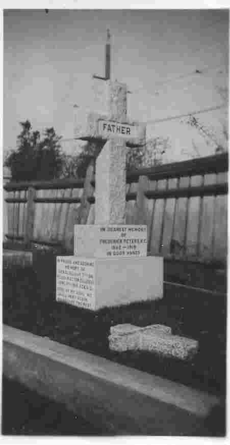 Frederick Peters, born in 1852 in Charlottetown, married Bertha Gray in 1886, died 1919 in Prince Rupert, B.C., buried in Ross Bay Cemetery in Victoria B.C., served as premier of P.E.I. 1891-1897. He was a lawyer with the Tupper and Peters firm in Victoria and later was city solicitor and city clerk in Prince Rupert. His son F.T. “Fritz“ Peters won the Victoria Cross.