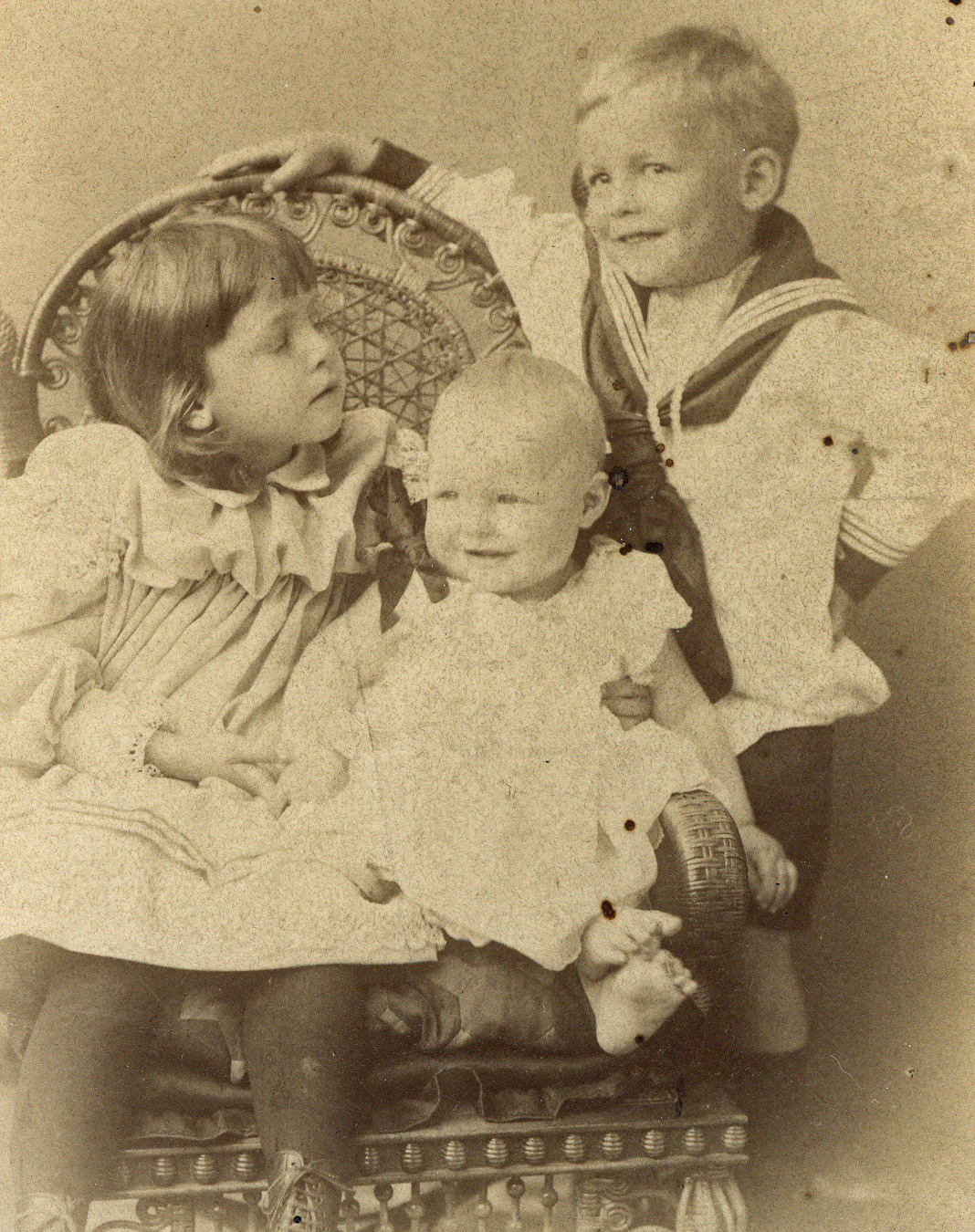 Jack Peters as a baby, with sister Helen and brother Fritz in Charlottetown, Prince Edward Island, Family photo.