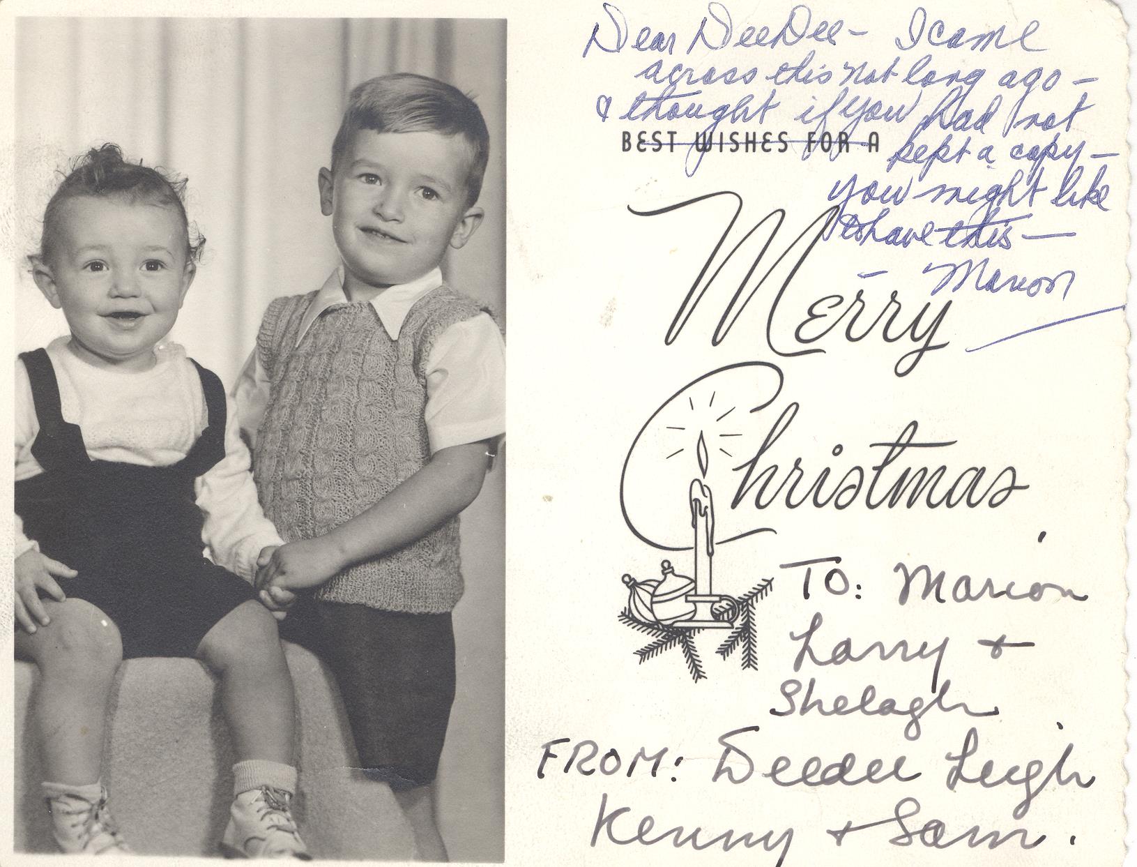Marion was a thoughtful friend. Here she sent back the 1952 Christmas card my mother had sent her several years later, thinking that Dee Dee may not have other copies of the card with a photo of her two boys Sam and Ken. She was right, as this is the only copy of the card in the family files. McBride Family collection.My family files show that Larry and Marion attended the 25th wedding anniversary party of my Dewdney grandparents in 1937, and the 25th wedding anniversary party of my McBride grandparents in 1939. They also attended the wedding and reception party of my parents Leigh and Dee Dee in 1948, and joined them in numerous social functions over the years. Obituaries and funeral reports show that Larry was a pallbearer at the funeral of Ted Dewdney in 1952, and the funerals of other grandparents R.L. McBride in 1959 and Winnifred Foote McBride in 1960. So there was a strong connection between my family and the McPhails, which was likely a factor in my parents choosing Marion to be piano teacher for my brother Ken, sister Eve and me in the late 1950s and into the 1960s.