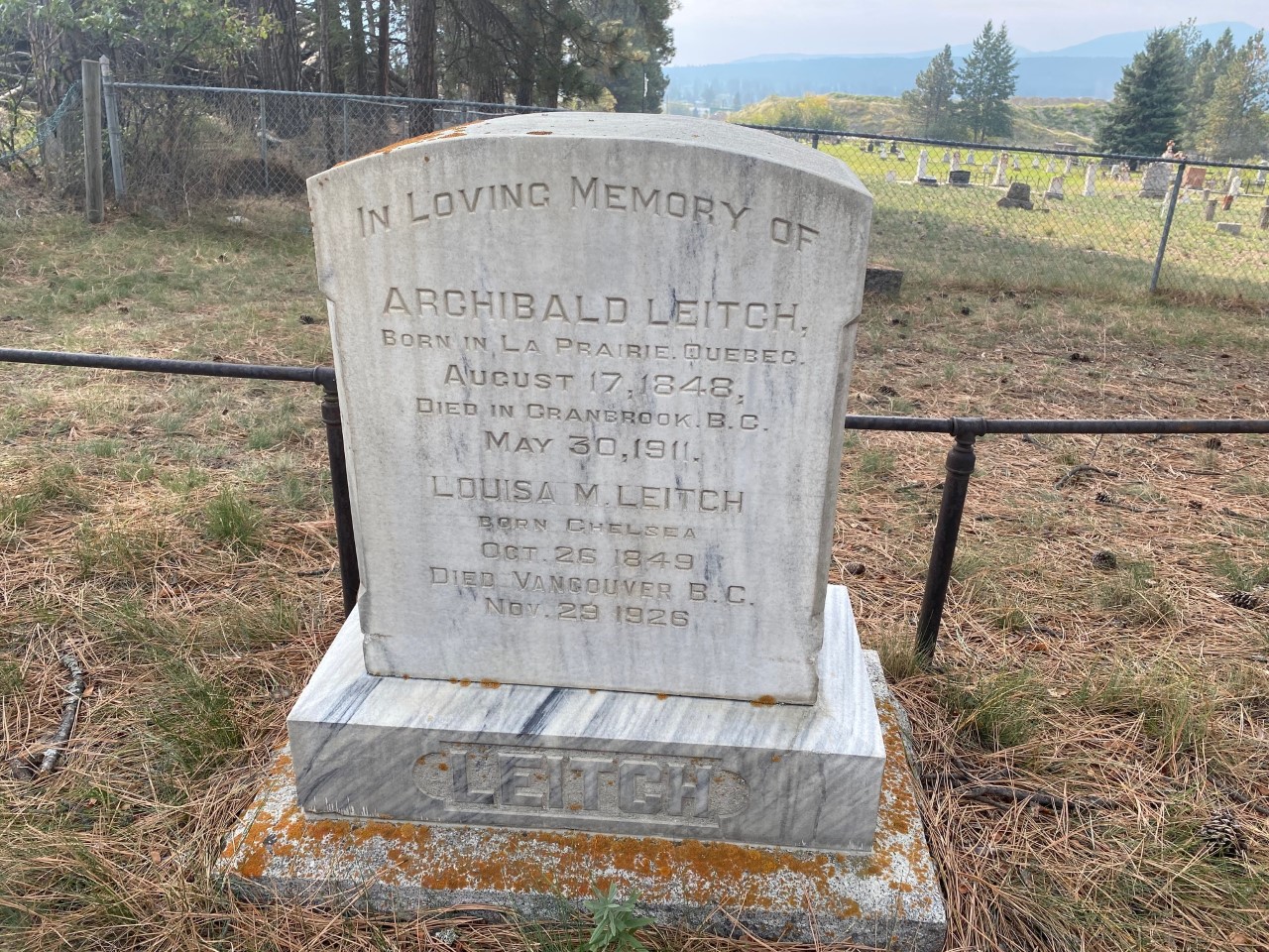 On a recent trip to Cranbrook, British Columbia I took the opportunity to visit the Leitch family graves in the Old Cranbrook Cemetery for the first time.