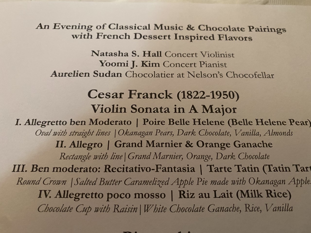 experience for the senses, as music by violinist Natasha Hall and pianist Yoomi Kim was paired with