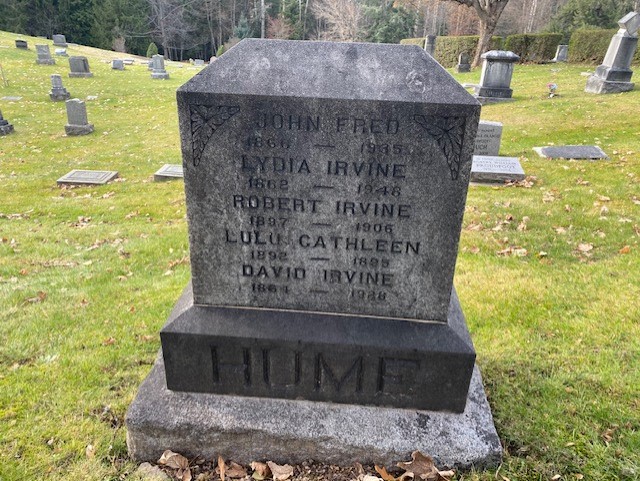 The next day there was a funeral service for Robert at the family’s house on Victoria Street conducted by Rev. R. Newton-Powell, pastor at the Methodist Church. This was followed by a solemn procession up to the cemetery, where he was laid to rest in the Hume plot in the Oddfellows section where 11 years earlier the Hume’s three-year-daughter Lulu Kathleen Hume was buried after dying from diphtheria. In November 1912, another sister, 27-year-old Eva Hume McBride (first wife of my grandfather R.L. McBride, who had been a pallbearer at Robert’s funeral), died from premature childbirth complications. Eva is buried next to R.L. and Winnifred McBride in the nearby Mason section of the cemetery.