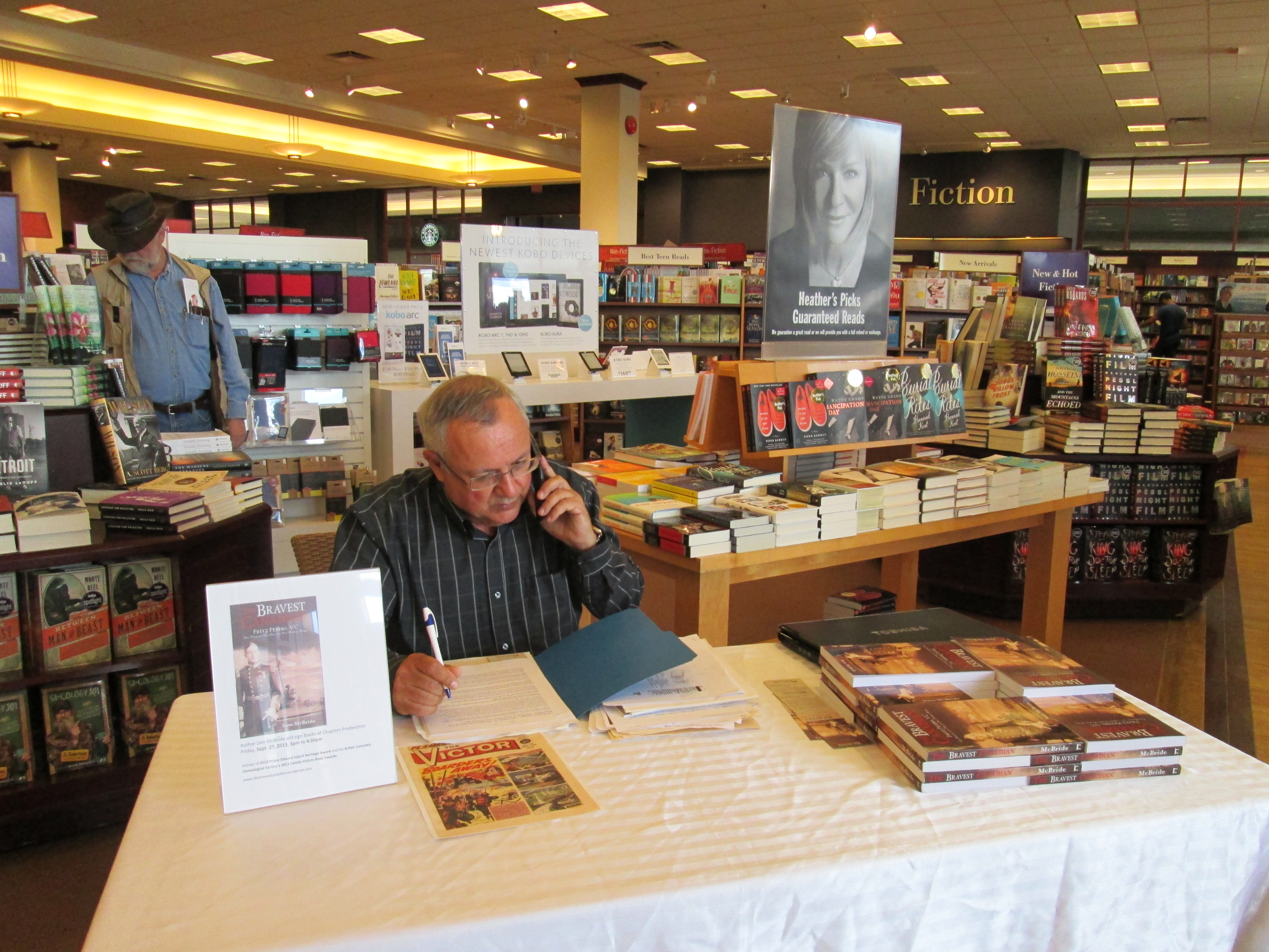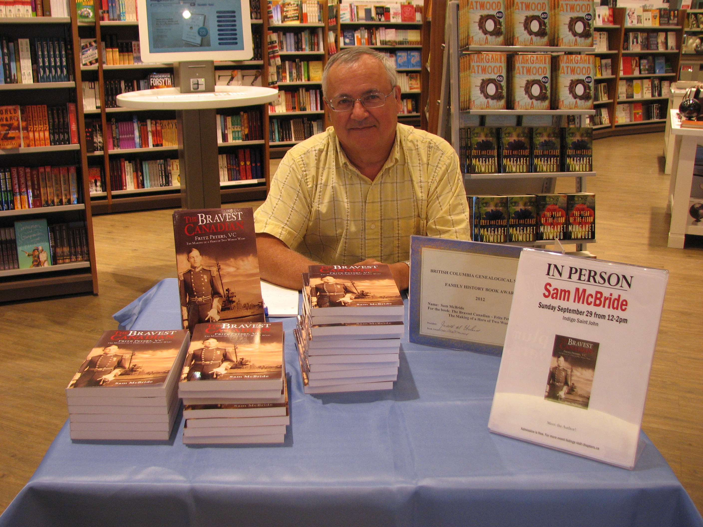 The author signing books at Indigo East Point in Saint John (photo taken by Kathy Wilson of the New Brunswick Historical Society, who came by to chat and bought copies of the book as gifts)