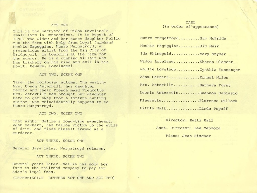 As a result, I never saw the show. And I did not keep a copy of the script. I heard later that the show came together well and the audiences — particularly children — really enjoyed it.