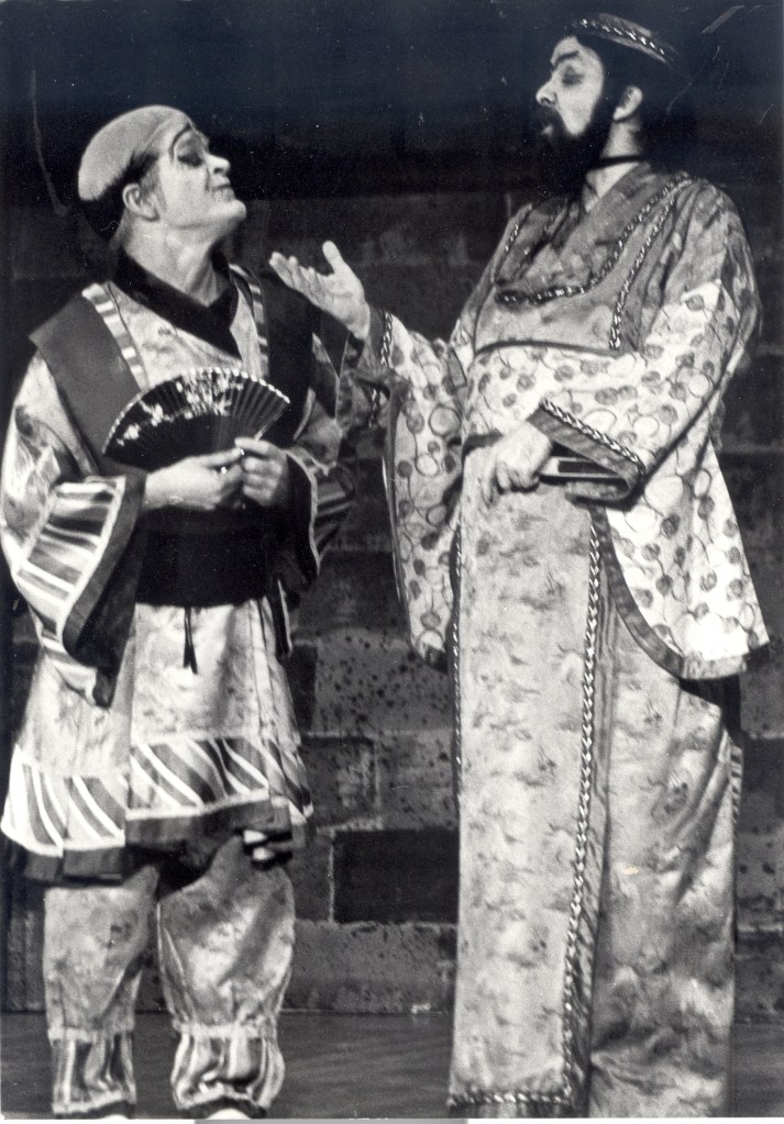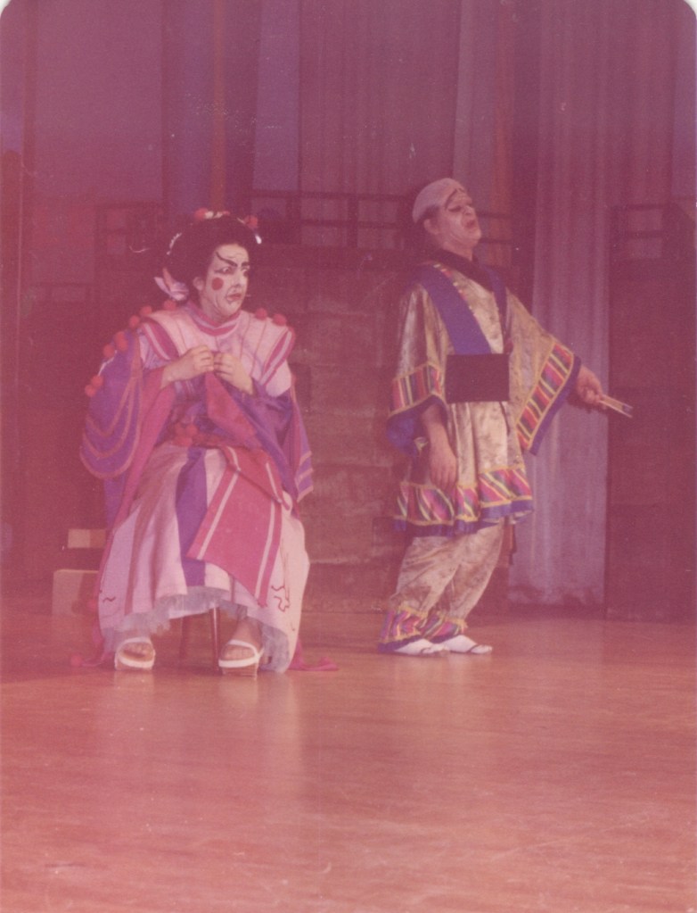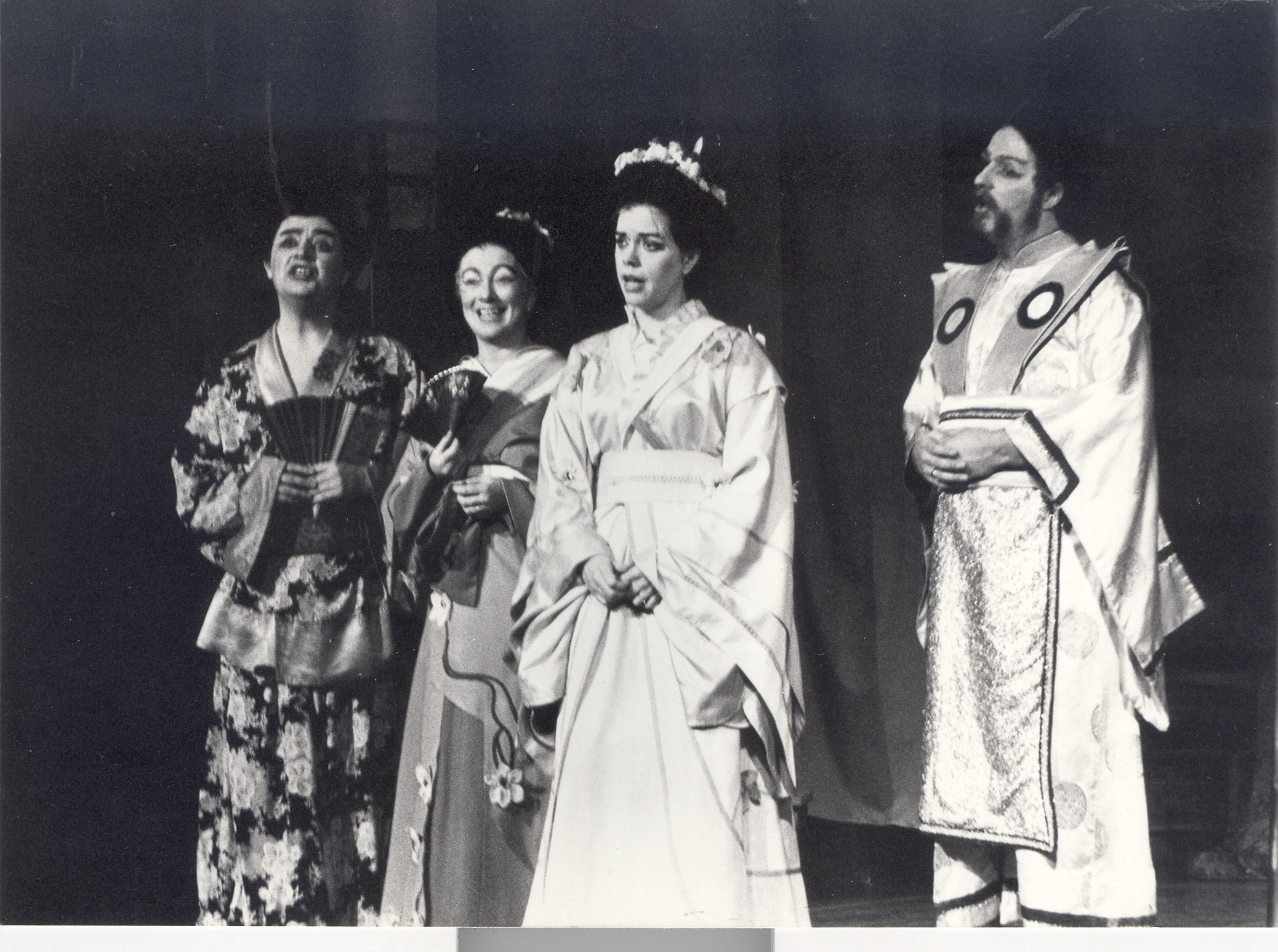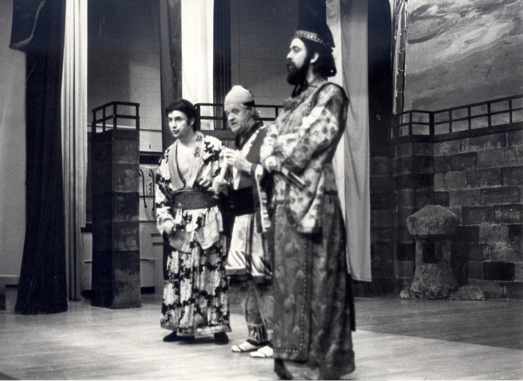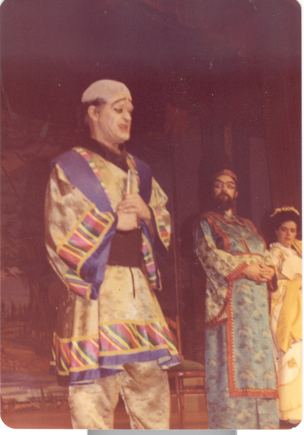 George Bourchier played the lead role of Koko in the 1982 production of “The Mikado”. I had a secondary role as Pish-Tush, which included one solo (“Our Great Mikado) and two trios, including “I am So Proud” with George Bourchier and Barry Glendinning. Here are some photos from the show. Babs Bourchier played Pitti-Sing, one of the Three Little Maids.