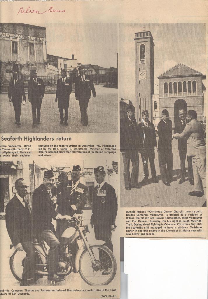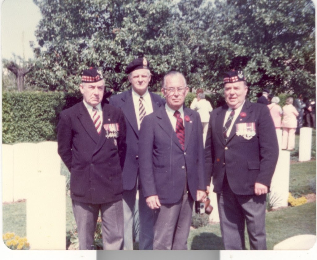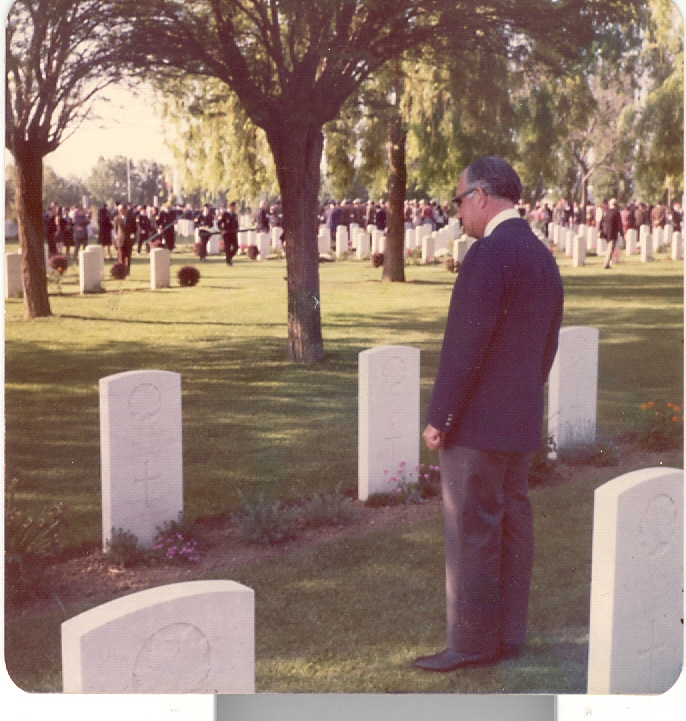 Leigh at the grave of his brother and fellow Seaforth Highlanders of Canada officer Capt, Kenneth Gilbert McBride (1920-1944) in Coriano Ridge Cemetary. The 1975 event was quite emotional for Leigh, as it was the first time he visited the grave of his brother. They grew up in Nelson, B.C., sons of R.L. and Winnie McBride.