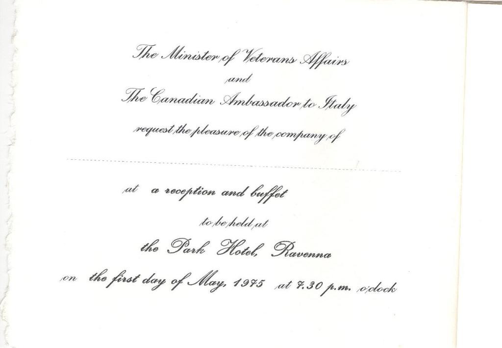One of the invitations my dad Leigh McBride received for an event in conjunction with the 30th anniversary reunion in spring of 1975. He had a keen sense of history, and had a habit of keeping souvenirs for future use. He died in 1995 without ever writing about his memories of the war or this reunion. But as his son looking after family memorabilia, I have been pleased to use the technology of today to share his keepsakes for posterity.