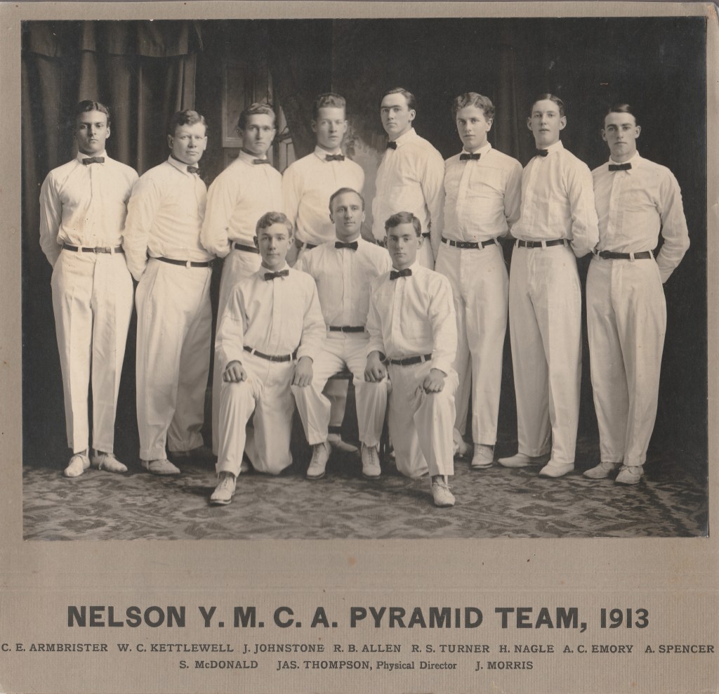 These photos show how Walter was “a picture of health” in Nelson sports clubs before World War One, including several gymnastic formations. Walter survived the war and technically was not injured, but damage to his health from trench warfare would bother him for the rest of his life.