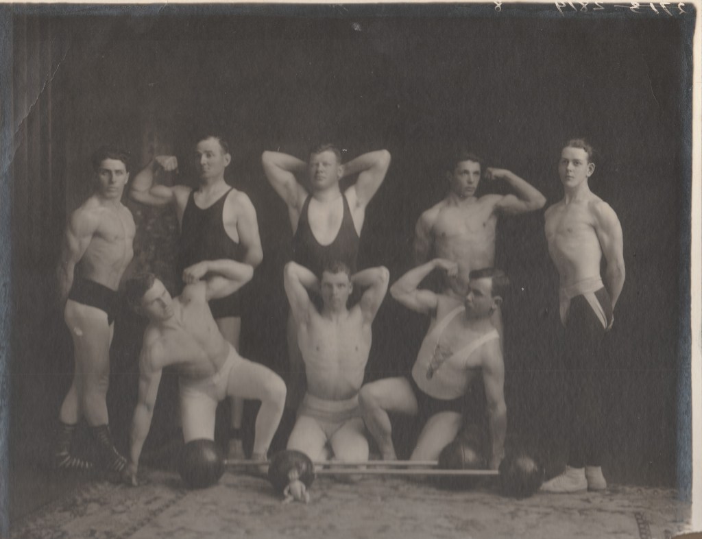 Walter, third from left, top row, with other gymnastic team members, 1913.
