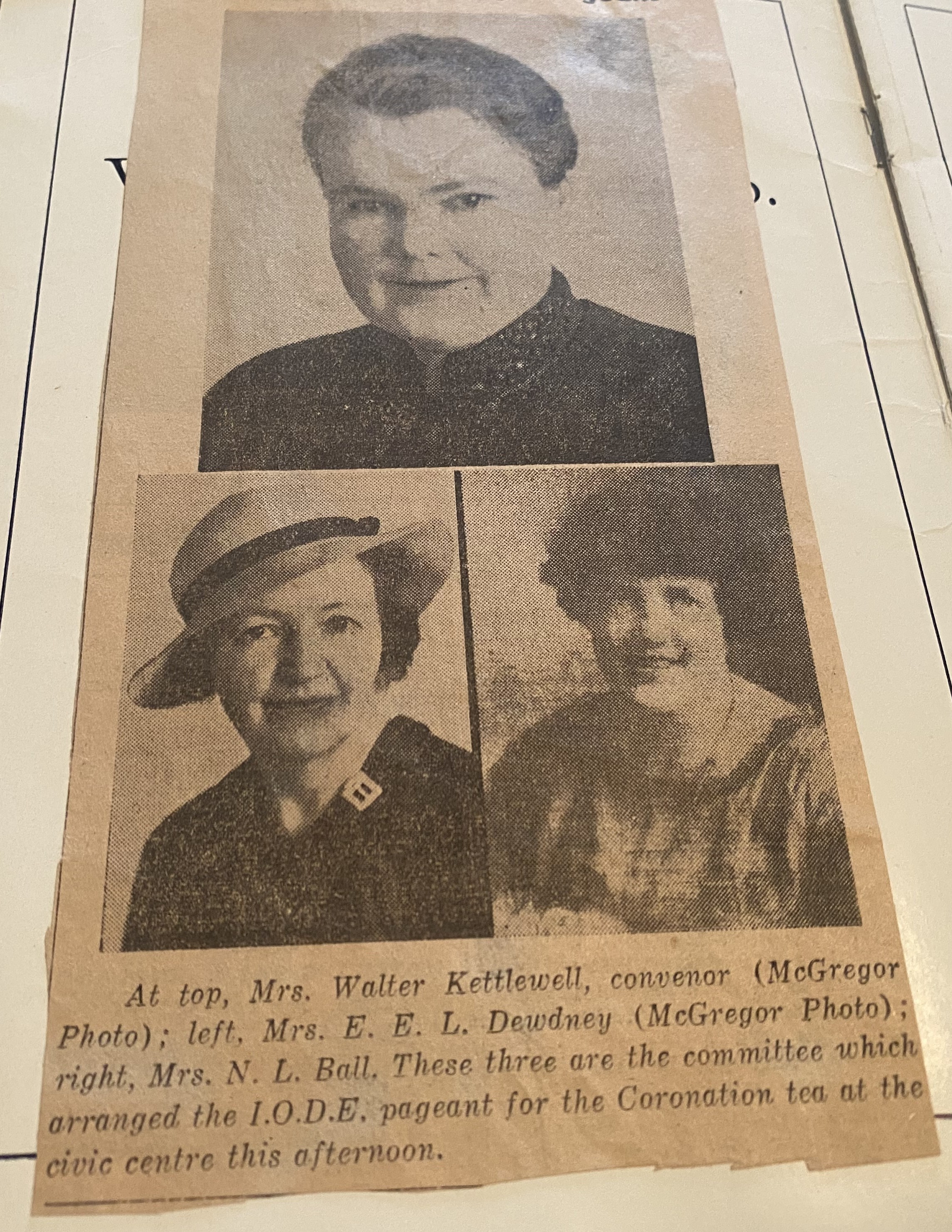 News coverage after the death of Elva’s father Leander Hanna in 1932 shows the high esteem in which he was held as a dynamic West Kootenay businessman. Courtesy of the Nelson Archives and Museum.The story of Elva’s mother Maud was told in tributes after her death in Nelson in 1952.Elva in costume for Nelson community theatre productions.Elva and my grandmother Helen Dewdney were very involved in organizing a Nelson pageant in honour of the coronation of King George the Sixth in 1937.Elva with her students at Central School in about 1925.Elva organized hundreds of Nelson students to fill out the name Canada, marking the 60th anniversary of Confederation in 1927.Elva, at far right in front of the students, of a class at Central School in about 1950.